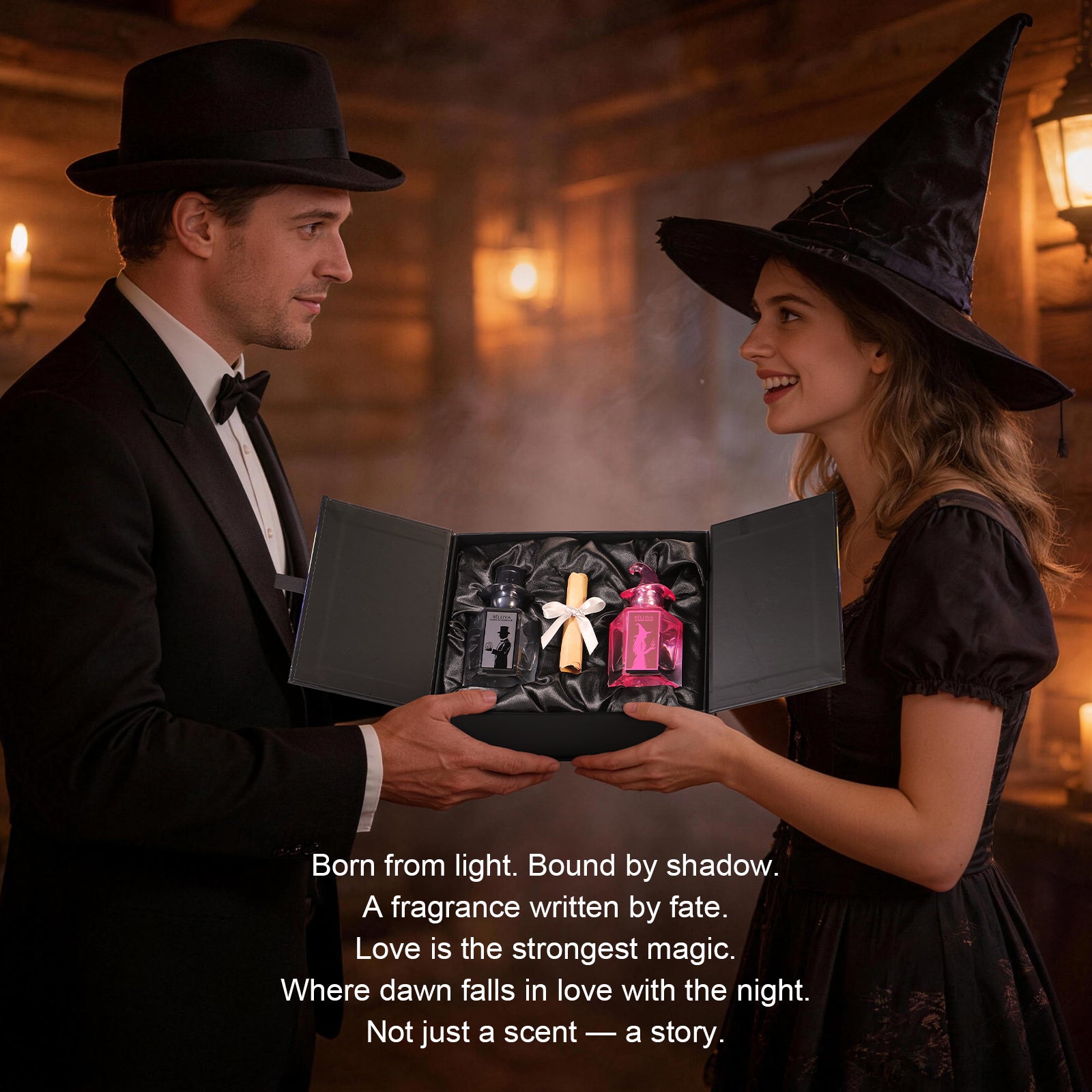 BELLIVA Witch Couple Perfume Set 2×50ml – Aurora Witch & Shadow Warlock – Amber Floral & Vanilla Aromatic – Long-Lasting Romantic & Mysterious Witch Fragrance – Elegant Gift Set for Valentine’s Day & Special Occasions